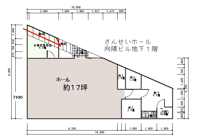 貸しホール・貸しダンススタジオ・貸し練習室・貸し会議室・貸しスペース![]() さんせいホール(スペースコウヨウ) 定員 テーブル使用 42名 シアター形式60名 |
