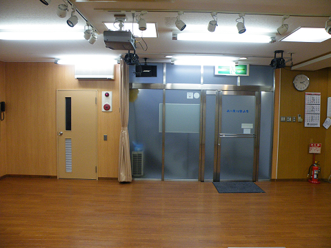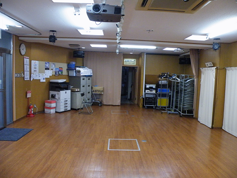 | ホ−ル 北面(天付きスクリーン有り) | ホ−ル 西面(鏡付き)普段はカーテンを閉めています | ||||||||||||||||||||||||||||||||